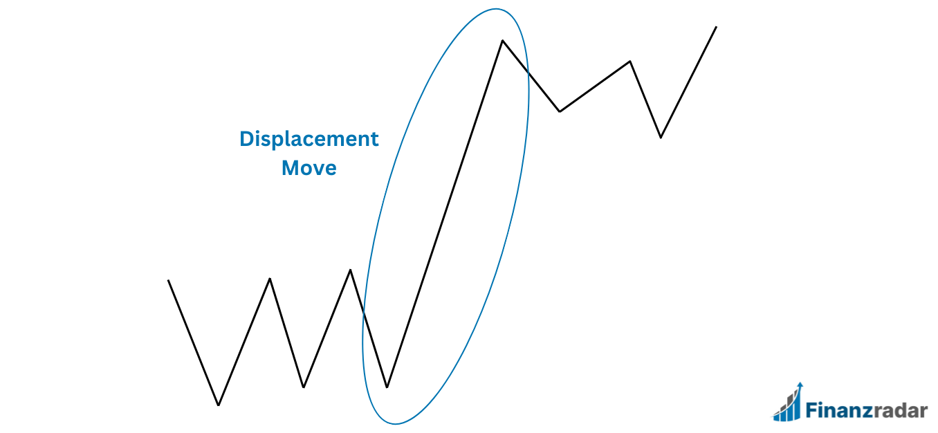 Hierbei handelt es sich um eine Disruption der Marktstruktur. Im Klartext bedeutet das nichts anderes, als dass eine starke Preisbewegung den Markt auf ein anderes Preisniveau ”verschiebt”. Mit der Verschiebung des Preisniveaus geht eine ”Verschiebung des Marktes” einher, das sich in einer Änderung des Trends ausdrückt. Die Verschiebung wird auch als „Displacement“ bezeichnet.