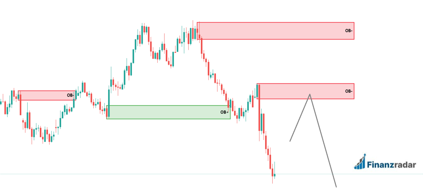 Orderblöcke sind Preisbereiche wo ein deutliche Überhang von Käufern oder Verkäufern ist. Aus diesem Überhang entsteht eine impulsive Bewegung. Oftmals kehrt der Kurs in den Bereich eines Orderblocks zurück, da hier genügend Liquidität liegt, welche Banken nutzen können, um ihre Positionen zu platzieren.