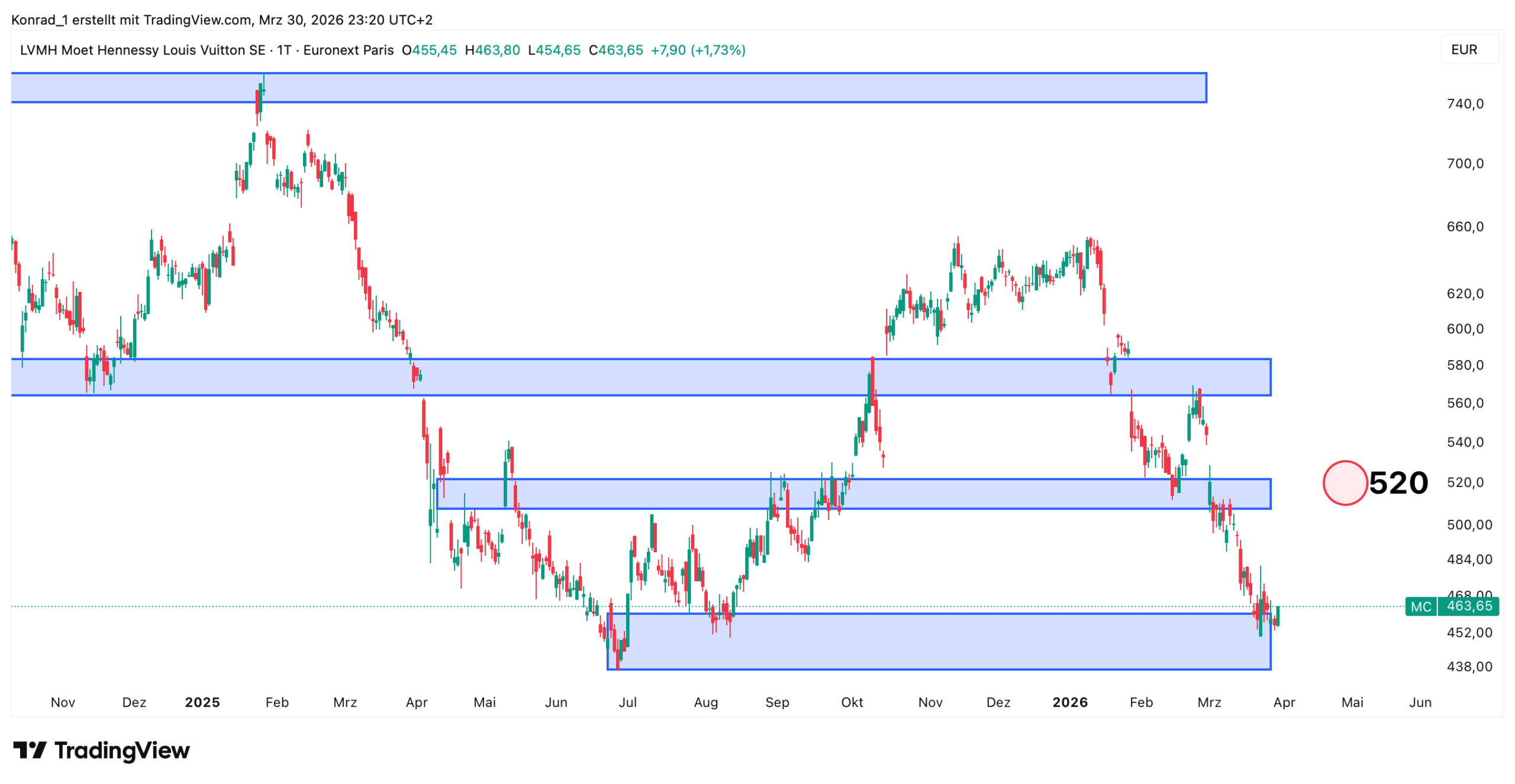 Für LVMH sehe ich ein Kursziel von 750 Euro für 2026 als realistisch . Entscheidend wird sein, ob an der nächsten potenziellen Unterstützungszone Kaufinteresse aufkommt oder ob die Schwäche anhält.