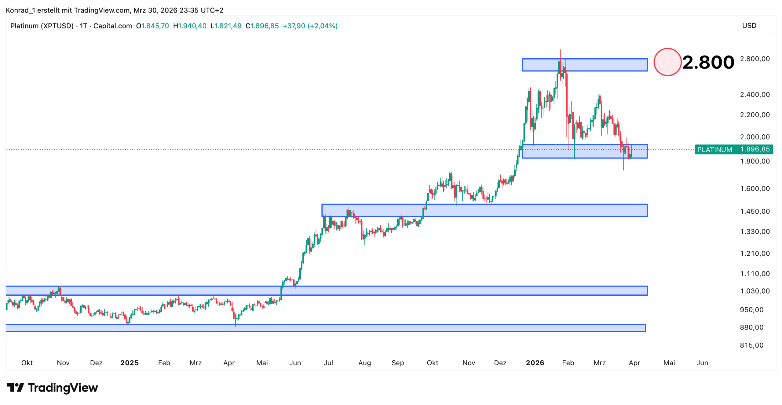 Beachte: Läuft der Kurs über 1.100 USD, so gilt dies als handfestes Kaufsignal.