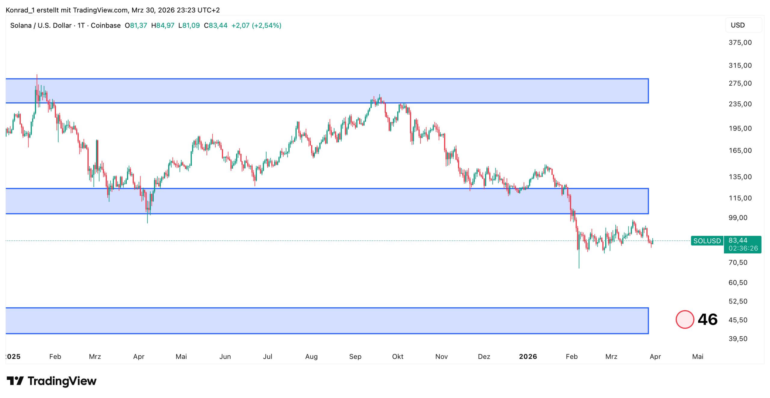 Für meine Idee wäre es wichtig, dass sich Solana weiterhin unter der Zone hält und die letzten Tiefs unterschreitet.