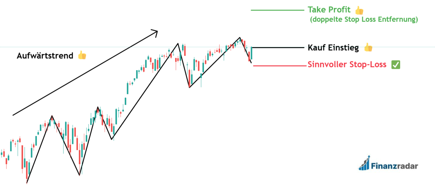 Extrem wichtig: In der Praxis lassen sich sehr viele Trendlinien finden, weswegen eine Linie alleine nur wenig Aussagekraft besitzt. Nutze daher unbedingt immer einen Stop-Loss!